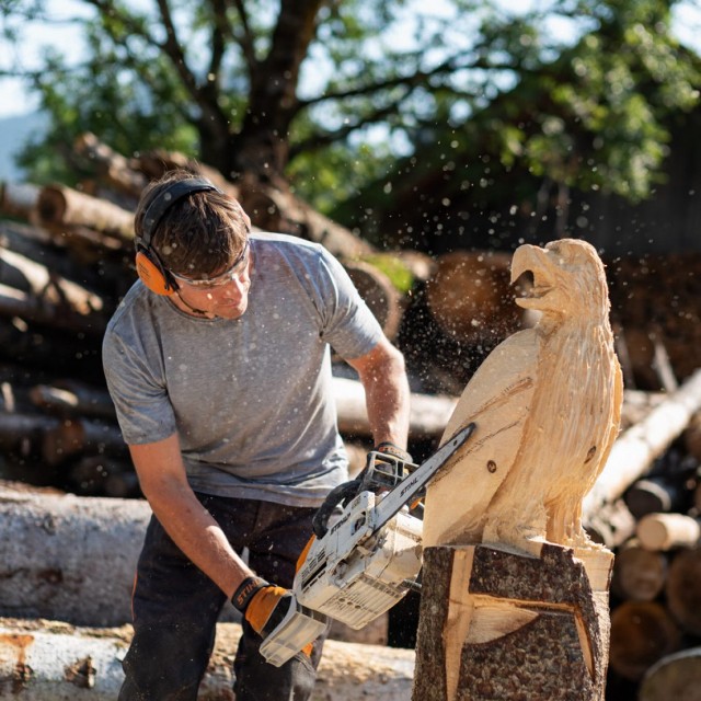 >> Dimostrazioni dal vivo. Spettacolari esibizioni di intaglio con la motosega.