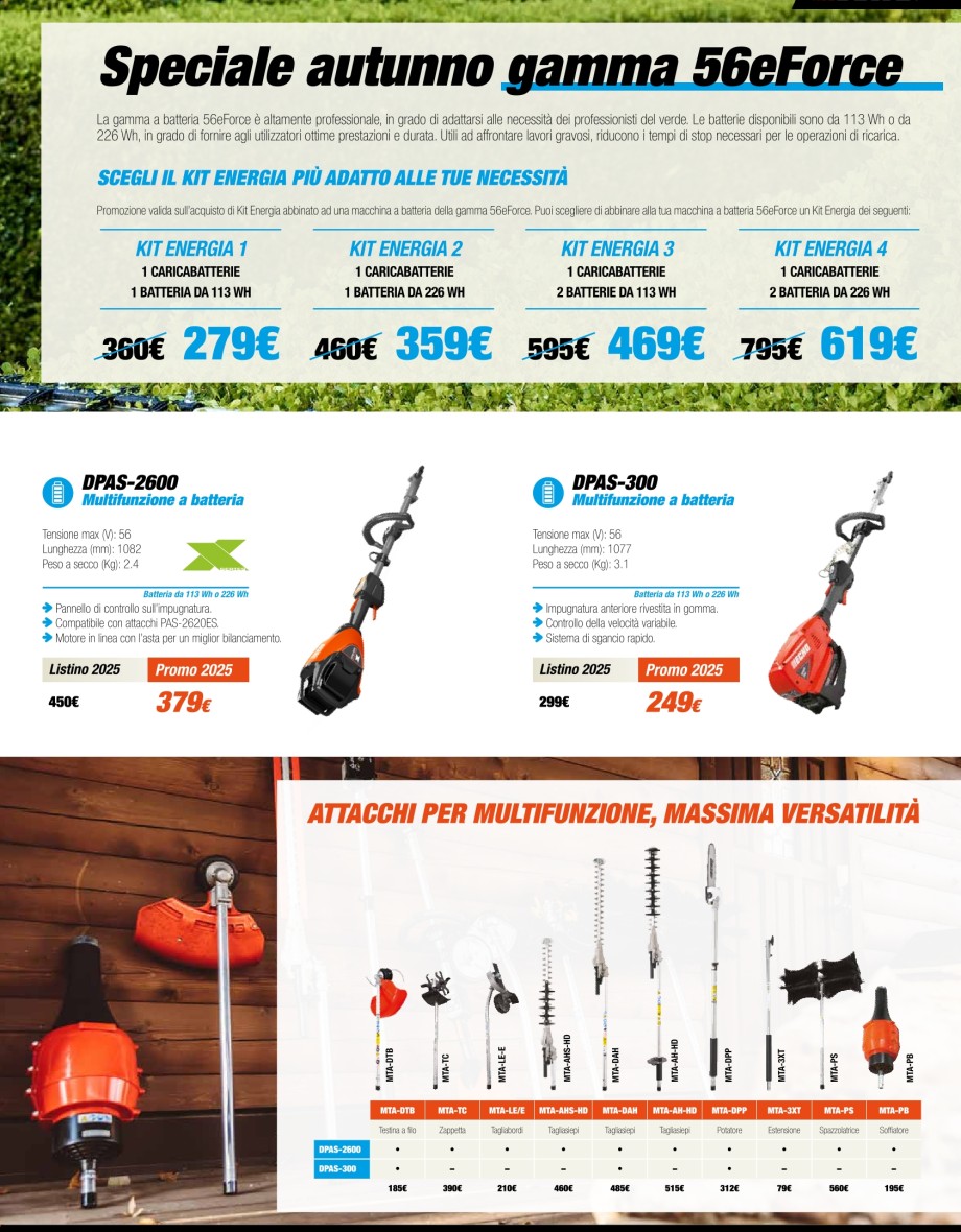 Vedi promoMotoseghe, decespugliatori, tagliasiepi, soffiatori.
