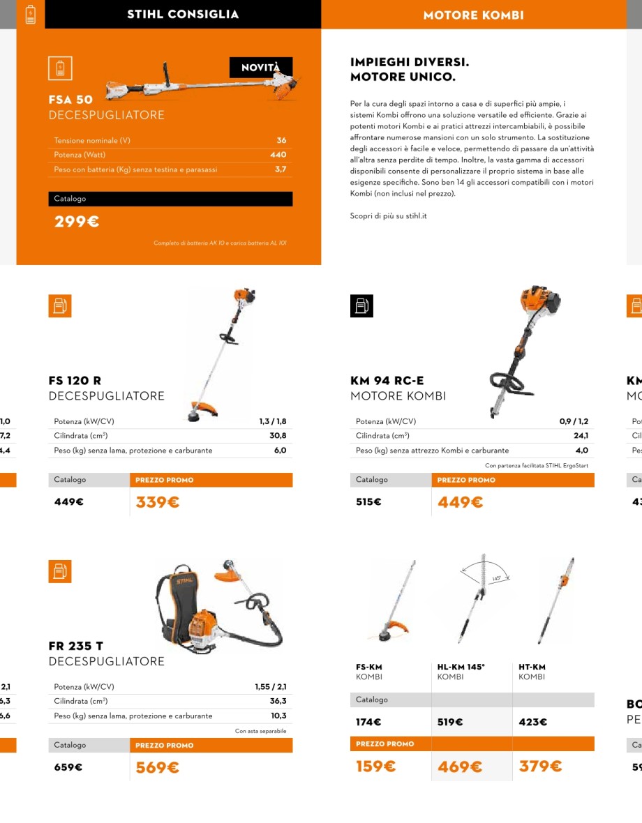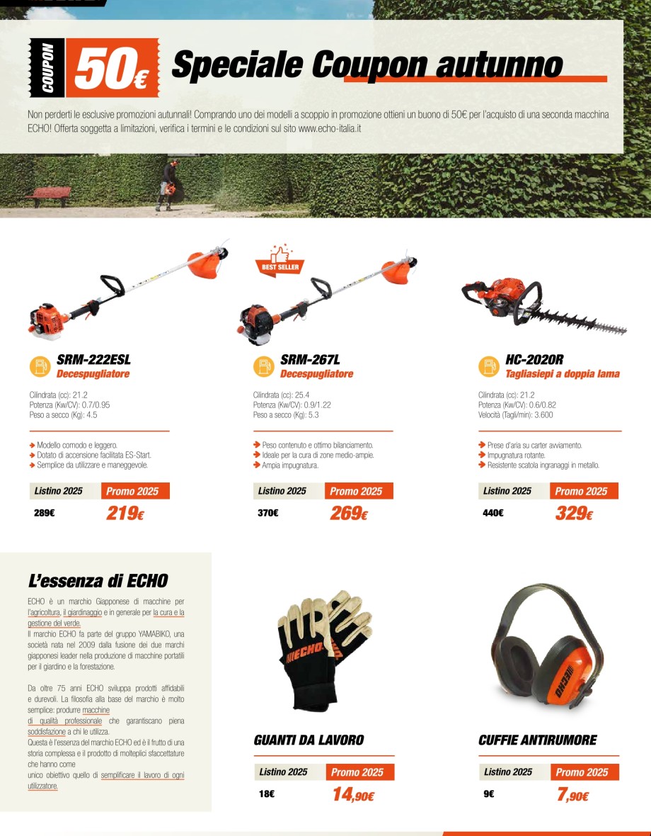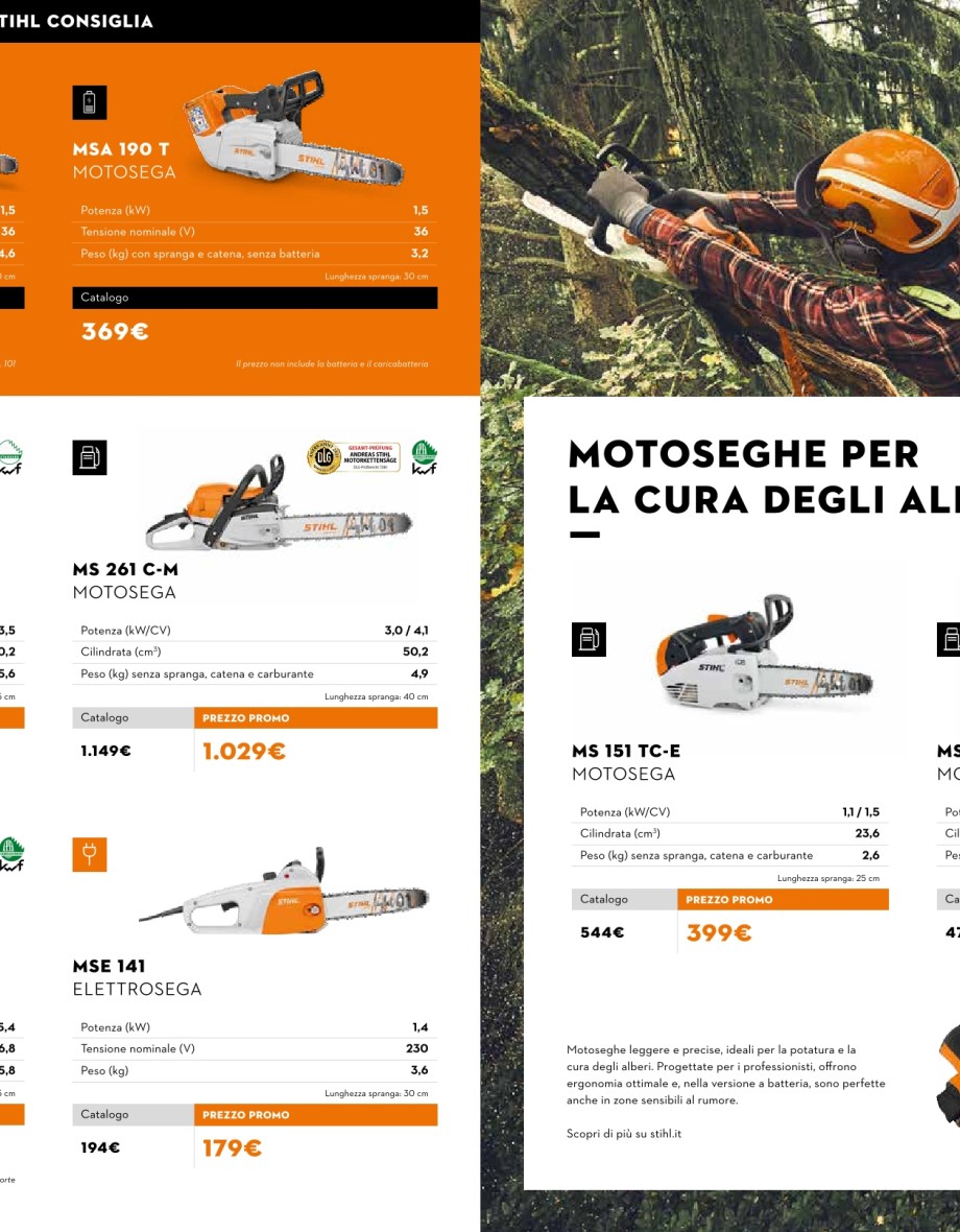 Vedi promoMotoseghe, decespugliatori, tagliasiepi, soffiatori.