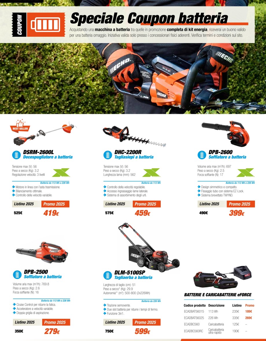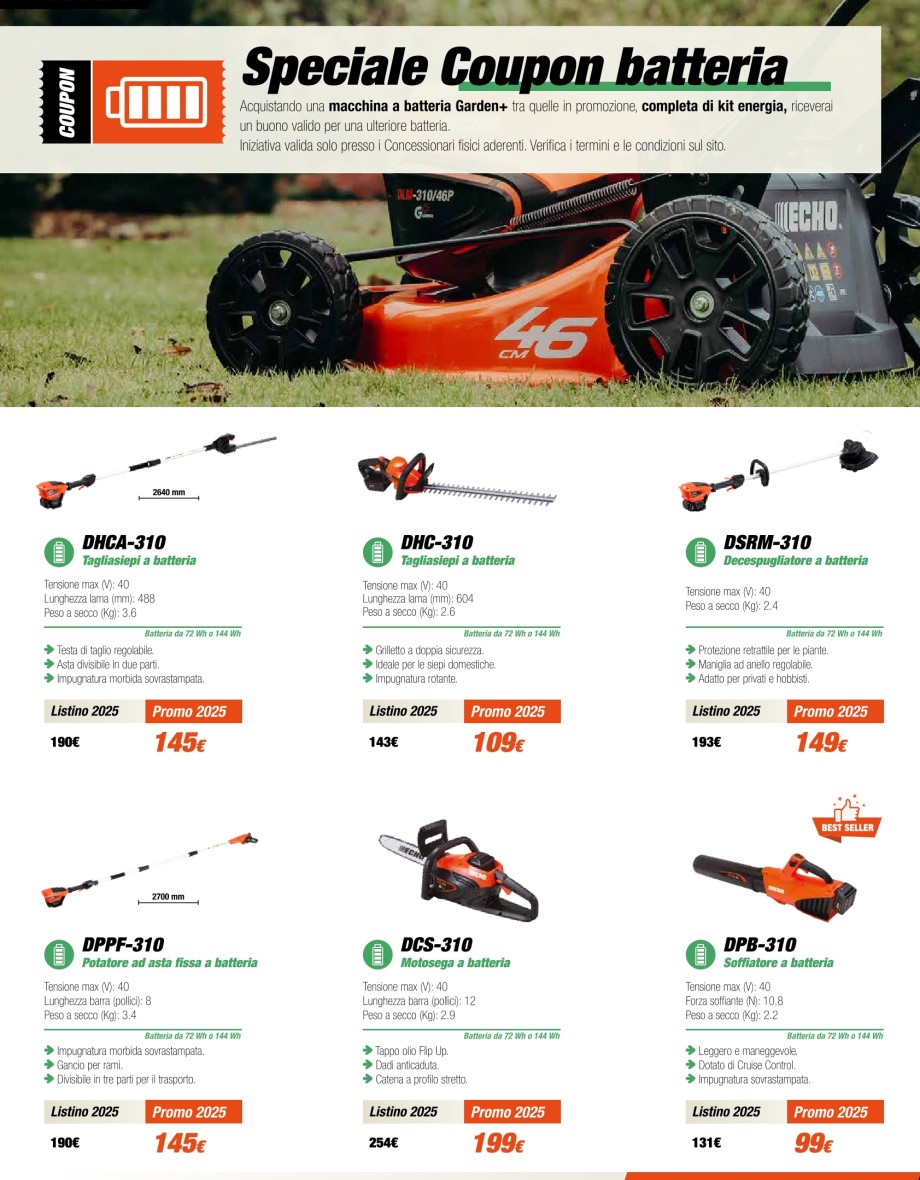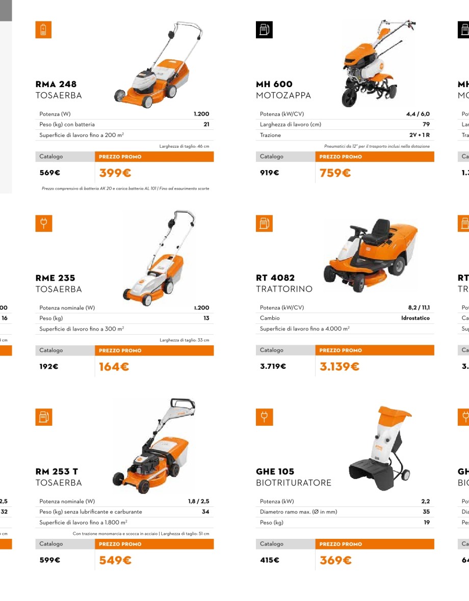 Vedi promoMotoseghe, decespugliatori, tagliasiepi, soffiatori.